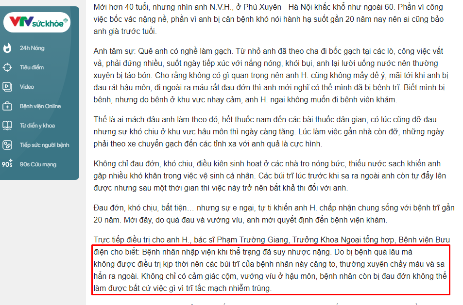 Đa phần người bệnh ngại đi khám, sợ cắt trĩ đau, tốn kém, mất thời gian nên đã đi mua thuốc theo quảng cáo trên mạng hoặc nghe lời “mách” của người quen. Tuy nhiên, sau thời gian dài điều trị bằng thuốc, đã tốn rất nhiều tiền mà bệnh nhân vẫn không thấy các triệu chứng thuyên giảm.