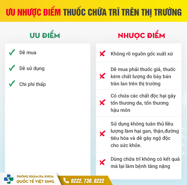 Nhiều bệnh nhân cho rằng, bệnh trĩ nội không cần điều trị mà búi trĩ vẫn có thể tự co lên, tuy nhiên đây là quan niệm hoàn toàn sai lầm. Hiện nay trên thị trường có 2 loại thuốc chữa bệnh trĩ phổ biến là thuốc Đông y và Tây y rất được ưa chuộng bởi những ưu điểm như dễ mua, dễ dùng và ít tốn kém. Thực tế, không phải ai cũng biết những rủi ro tiềm ẩn khi sử dụng thuốc chữa trĩ, cụ thể: