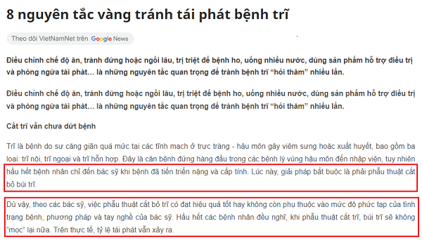 Bệnh trĩ nếu được điều trị đúng cách ngay từ đầu sẽ cho hiệu quả cao và ngăn ngừa tái phát. Tuy nhiên, tâm lý ngại đi xa, sợ tốn kém khiến rất nhiều người bệnh chỉ đi khám và chữa trĩ ở các cơ sở y tế chui, kém chất lượng dẫn đến bệnh nhanh tái phát.[Tôi có dấu hiệu tái phát bệnh trĩ – Cần tư vấn]
