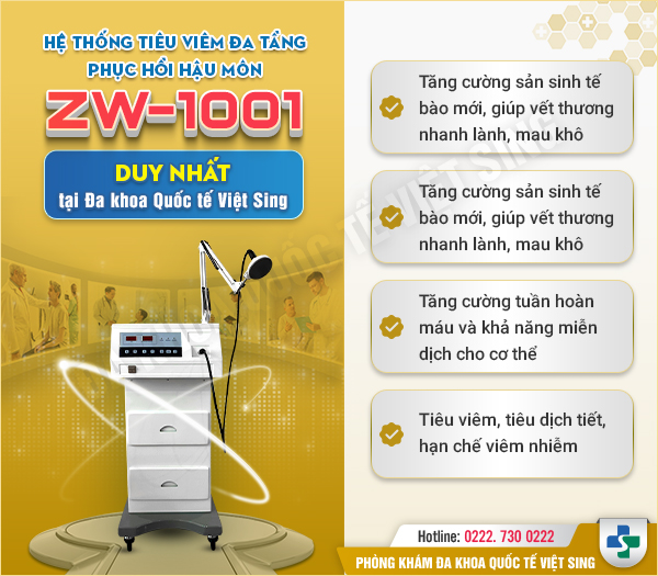 Việt Sing là cơ sở đầu tiên và duy nhất tại Bắc Ninh ứng dụng công nghệ ZW-1001 trong phác đồ điều trị và chăm sóc hậu phẫu trĩ ngoại, mang lại hiệu quả phục hồi tối ưu cho người bệnh.