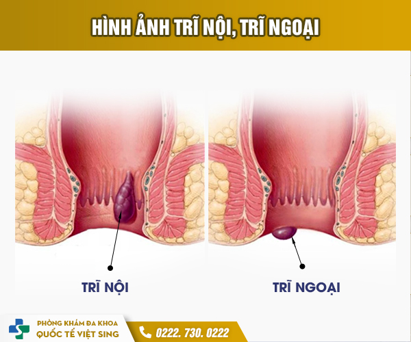 - Trĩ ngoại: Xảy ra ngoài hậu môn, có thể gây đau đớn và sưng tấy, đôi khi có thể xuất hiện máu khi đi vệ sinh.