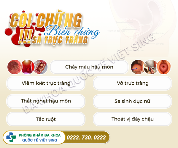 - Vỡ trực tràng: trực tràng khi bị sa xuống sẽ dễ bị tổn thương hơn khi gặp áp lực mạnh, thậm chí có thể gây vỡ trực tràng dẫn đến nguy cơ bị loét, hoại tử đoạn trực tràng bị sa do vi khuẩn từ hậu môn xâm nhập.