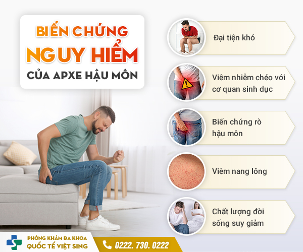 - Dẫn đến các bệnh lý hậu môn khác: Táo bón, trĩ , nứt hậu môn do người bệnh nhịn đại tiện vì cảm giác đau do apxe hậu môn gây ra