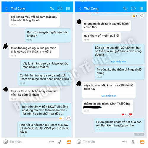 Em đi ngoài ra máu tươi mấy hôm nay rồi. Đang sợ xanh mặt đây mà kinh phí không có nhiều, không biết phòng khám mình có ưu đãi gì cho bệnh nhân không?