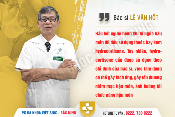 Bác sĩ Lê Văn Hốt tại phòng khám Đa Khoa Quốc Tế Việt Sing cho biết: “Việc điều trị ngứa ngậu môn hiệu quả cần được dựa trên từng nguyên nhân cụ thể. Sở hữu nhiều tính năng vượt trội, phương pháp ITC tân tiến hiện nay sẽ là giải pháp giúp chữa khỏi mọi tình trạng ngứa ngáy khó chịu gây ra bởi các bệnh lý hậu môn trực tràng ( bệnh trĩ, bệnh rò hậu môn, bệnh nứt kẽ hậu môn, bệnh polyp hậu môn,…)”