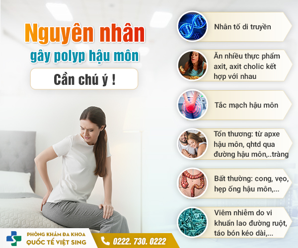 Polyp hậu môn là khối u lồi vào trong lòng trực tràng, hình thành do sự tăng sinh quá mức của niêm mạc trực tràng. Nguyên nhân dẫn đến bệnh lý này có thể do một số yếu tố dưới đây: